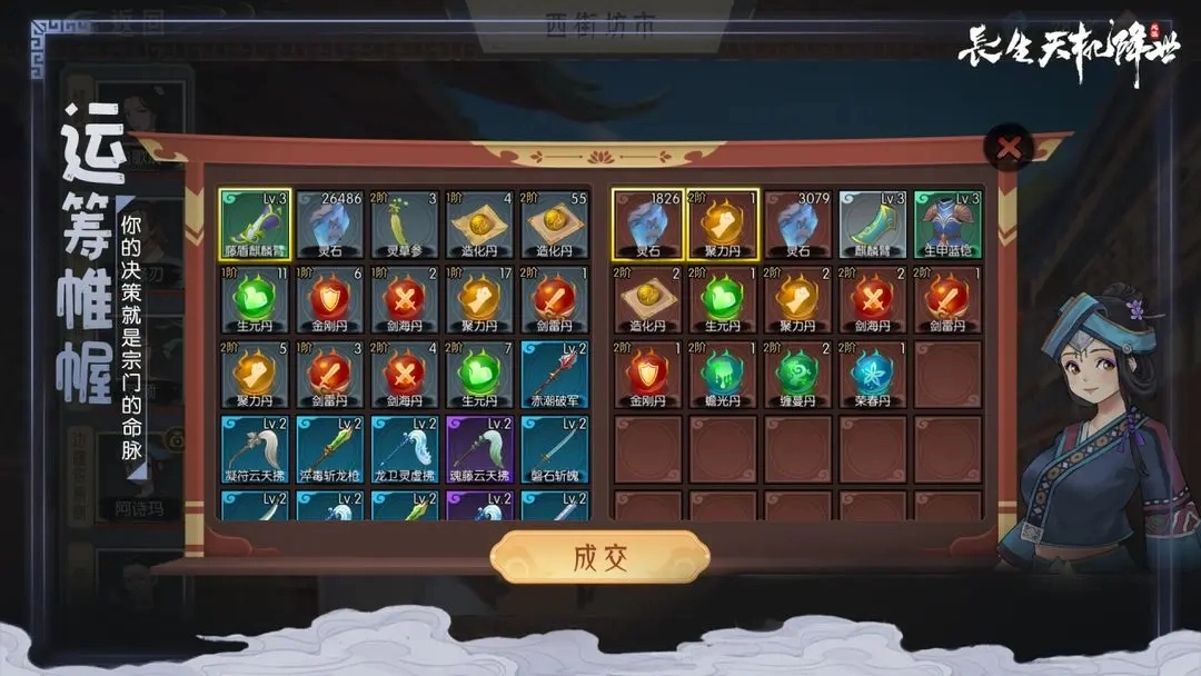 给吕风配备“玄天幻妙诀”这门功法。每日坚持炼器,通过废品装备兑换玄石与灵石,直至将炼器等级提升至满级。