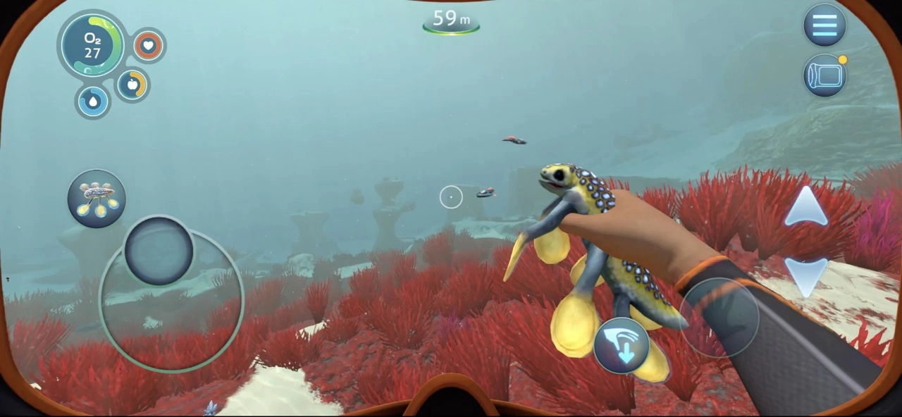 游戏开始时氧气值为40秒,当氧气不足时,你需要浮到水面、进入逃生舱或房间,或者回到载具里补充氧气。如果氧气耗尽(变为0),屏幕会慢慢变黑,要是在屏幕完全变黑前没能及时浮上水面,角色就会死亡。这里有两个关键机制:一是氧气为0后不会立刻死亡,短时间内补充氧气就能恢复正常;二是缺氧状态不会扣除你的生命值,哪怕血条是满的,缺氧到一定程度也会直接死亡。氧气瓶能提升氧气的携带量,循环呼吸器则可以降低氧气的消耗速度,所以尽早制作这两件装备,能让你在水下停留更长时间。