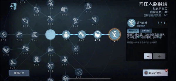 副天赋优先选辅助能力最突出的医者,玩救人位会轻松不少;其次推荐回光返照旁能让坐椅减速的假寐。这两个天赋相当于间接节省了修机时间,还能提升角色的保命能力。