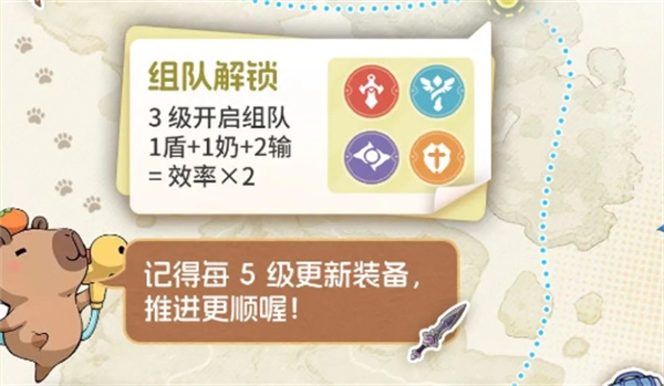 刚进入游戏时,系统会配备人机队友协助战斗,一开始可以先独自推进关卡,等角色达到3级后再组队挑战效率会更高!游戏中的职业主要分为四大类别:肉盾、物理输出、法师和治疗。