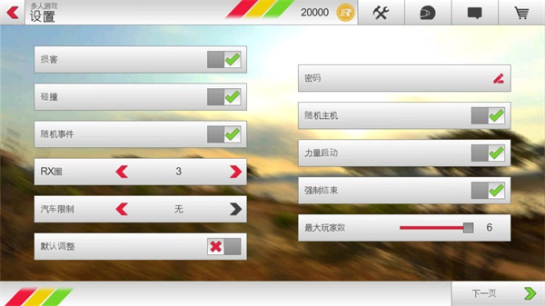 主界面设有多个比赛项目,像单人拉力赛这类,是能够直接发起挑战的。