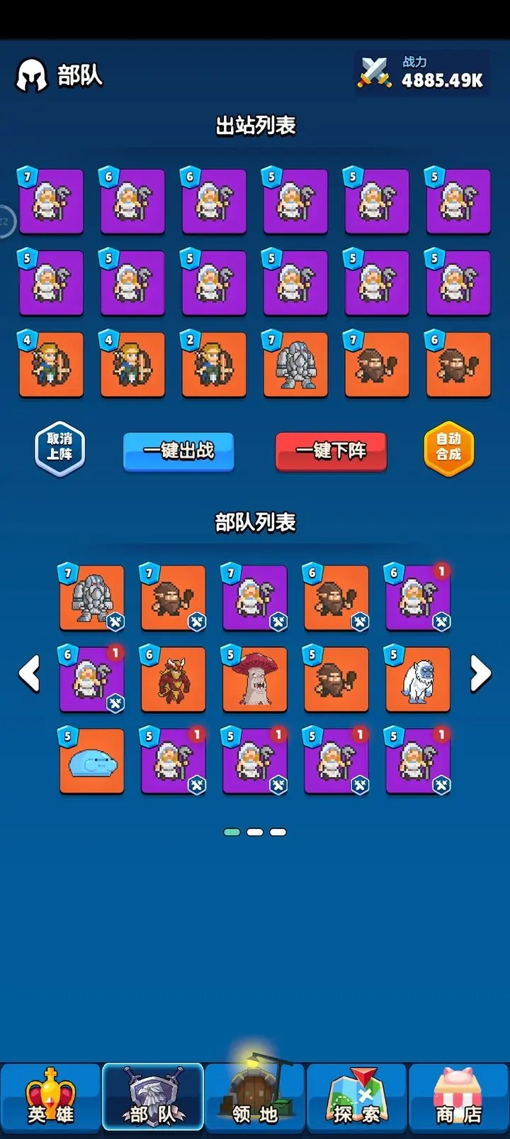 作为一款模拟经营游戏,玩家能自由建设专属国度,还能打造个性化部队,这点设计挺有意思——商店里可抽取各式各样的士兵,每个兵种都有独特能力,玩家能随心搭配出强力战队,如今连勇者都不用亲自上阵啦~游戏还有丰富的副本关卡,供玩家尽情探索内容。