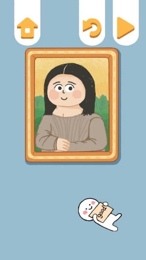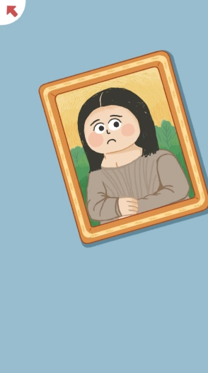 第四关,画像里的女孩看起来不太开心,把画像摆正后,你会看到她露出笑容了。