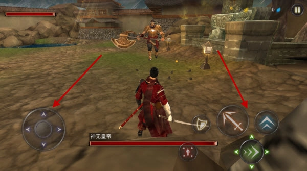 可以通过屏幕下方左右两侧的按钮来操控角色,实现移动和攻击的动作。