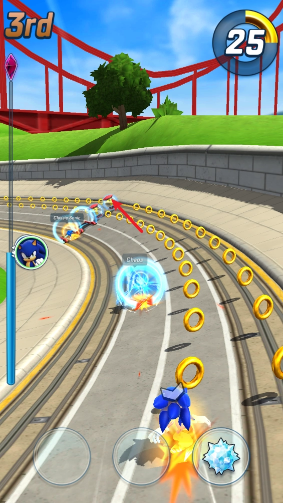你可以选择索尼克、艾米、塔尔斯、纳克鲁斯、暗影等众多索尼克系列的英雄角色,与他们一同体验紧张刺激的竞速对决。