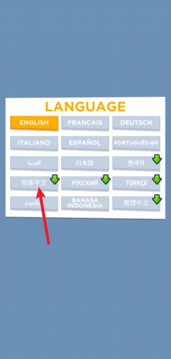 首次进入游戏时,系统会提示你设置语言,选择简体中文就行。