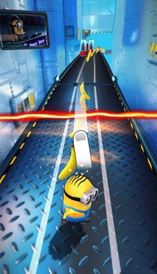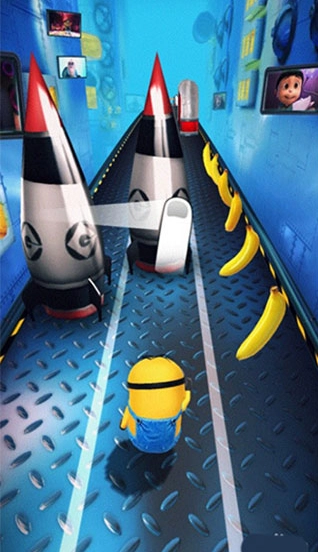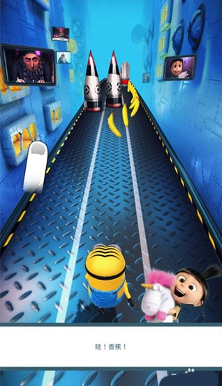 我们会进入一条跑道,通过左右滑动屏幕来操控小黄人避开障碍。
