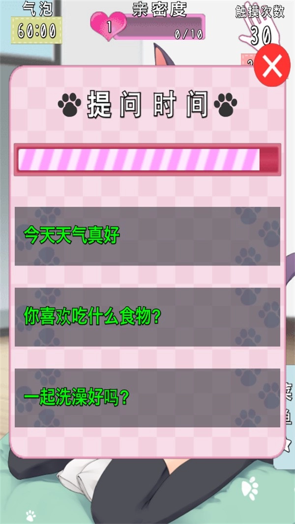 轻松互动玩法:轻点屏幕,就能和猫耳少女展开多样互动,增进彼此的亲密度。
