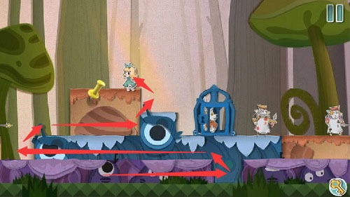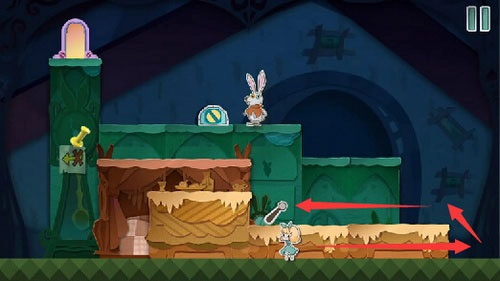 当巡逻兵移动到右侧位置时,把蓝色方块向左拖动就能将其隔开,接着用钥匙打开门救出老鼠,这样就能顺利通过这一关了。
