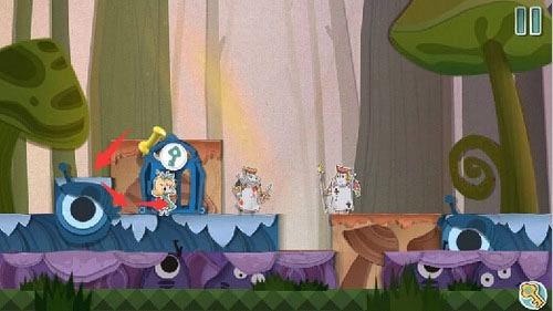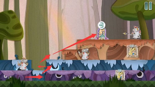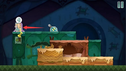 把红色方块向右拖动来铺设路径,接着沿着铺好的路爬到顶端安装拉杆,使传送门降落。