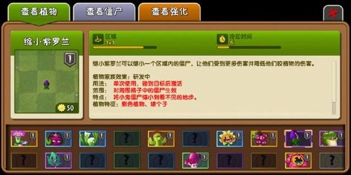 一般来说,绝大多数植物子弹只能朝前方发射,除了少数特殊植物外,大部分植物都缺乏自保能力。这时缩小紫罗兰的作用就体现得十分明显了,不过由于它的冷却时间较长,所以很少有人会选择携带它。