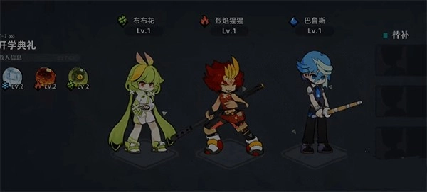 教学环节结束后,玩家就能开启正式的游戏进程了,初始的四星角色“御三家”也会加入队伍——这三个角色分别对应着不同的基础属性,且都具备不错的强度。作为我们最早获取的角色组合,这套阵容在游戏前期非常适合用来开荒。建议大家在前期把他们的等级提升到满级,将练度拉满就可以了。