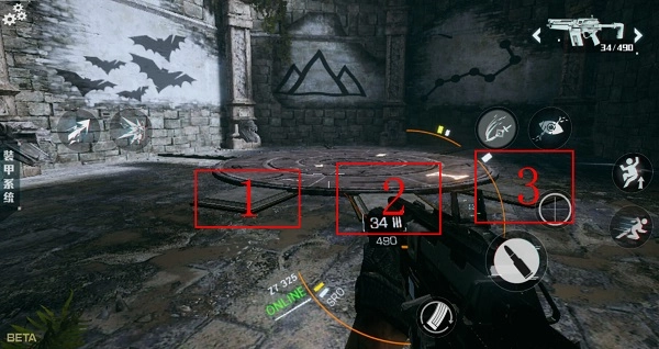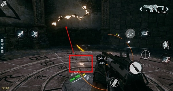 瞄准敌人之后,我们连续点击子弹按钮可以持续开火。