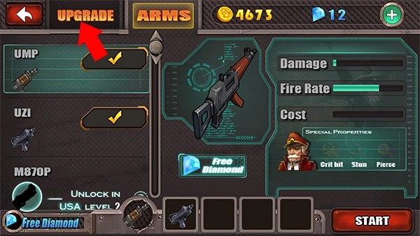 进入游戏并来到关卡准备界面后,点击上方的Upgrade界面