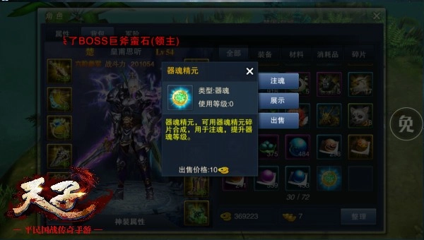 《天子》里的装备按颜色划分为绿、蓝、紫、金四个等级,绿色品质最低,金色品质最高,因此玩家们都渴望集齐一套金色装备,先从装备的气场层面压制对手。除了颜色对应的等级差异外,同类型的装备还存在品质上的区别,玩家获取装备后需认真甄别,避免误把品质更好的装备熔炼掉。装备还能通过强化石与铜钱进行强化,强化所带来的属性加成会因装备的品质和等级而有所不同,而且每提升一级强化所增加的属性数值也不一样,装备的品质越高、等级越高,每级强化带来的属性增长幅度就越大。强化装备的不同部位,对应的强化属性也各不相同,在资源有限的情况下,玩家可以优先强化自身更需要提升的属性对应的装备部位。