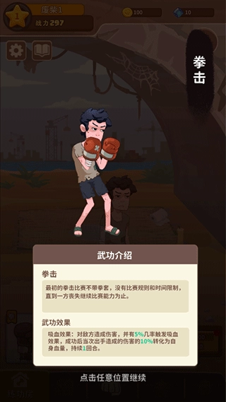 首先进入《我不是废柴》这款游戏,你会从一个废柴的初始状态起步,需要学习一门功夫,像拳击这类就可以作为选择项。