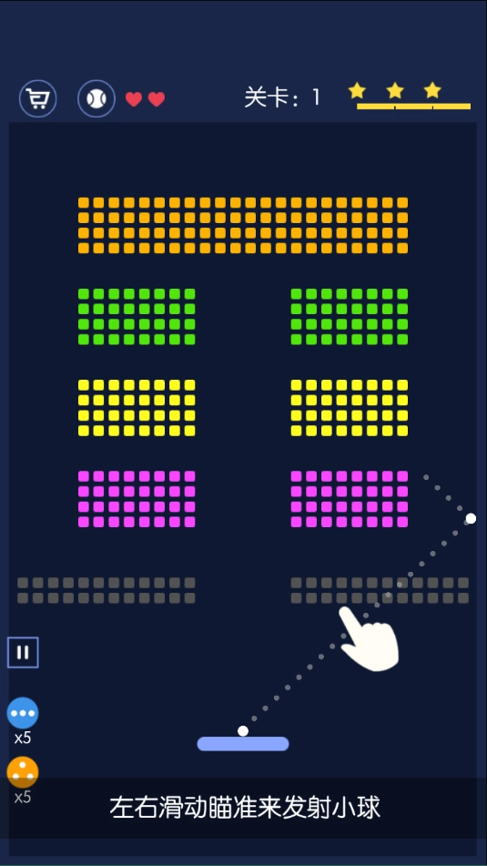 首先进入游戏后,根据提示左右滑动瞄准来发射小球