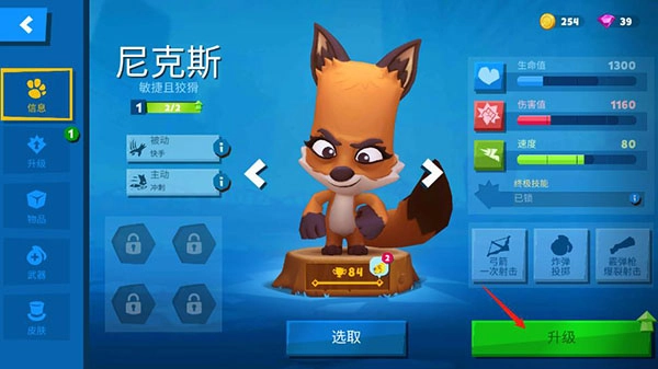 均衡系的狐狸,主打灵活性打法,技能冷却时间短,拾取装备速度快,既能助攻也能辅助队友。