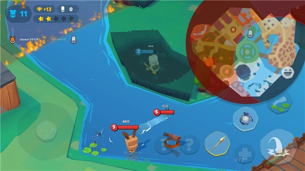 舔包环节也进行了简化,当前可用武器固定为长矛、炸弹这三种,以此保障我们能快速发展;补给品方面只有补血和增加护甲值的,没有过于复杂的设定。另外,游戏比较有特色的地方还有地图设计,每个区域都具备独特属性,像冰原能够滑行、草地进入后会隐身,如何利用这些特殊地形,同样是我们成功“吃鸡”的必修课。