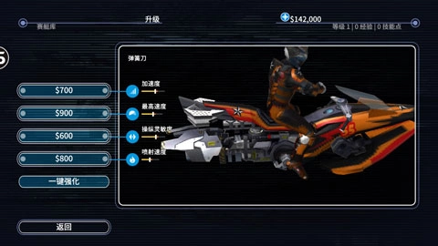 赛艇的样式丰富多样,解锁赛艇后还需进行强化升级,而加速度、最大速度、灵敏度以及喷射速度等方面的提升,同样是加快赛艇速度的关键所在。