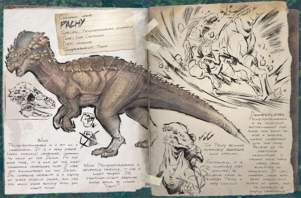 肿头龙在岛屿的草原与丛林地带颇为常见,通常情况下靠近它们并不会遭到攻击。不过这种生物具备群体意识,一旦攻击其中某一只,周边的肿头龙便会一同对你发起攻击。肿头龙的头部有着厚实的头骨,因此拥有较高的伤害减免能力,其攻击还能增加对手的眩晕值——这里顺便提一句,生存者的眩晕值累积到50就会倒地昏迷。要是前期想驯服一只肿头龙,而目标附近又不止一只同类的话,就得格外小心了。