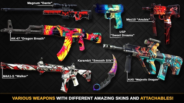 丰富的武器库和实用工具,例如- AK47、M4A1、 沙漠之鹰、玛格南狙击手、燃烧瓶等等。