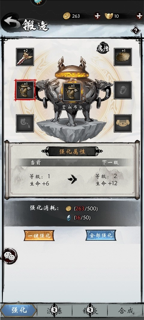 当装备材料充足时,能够一键合成高品质装备;到了后期,还能借助洗炼和镶嵌的方式进一步提升装备的属性。