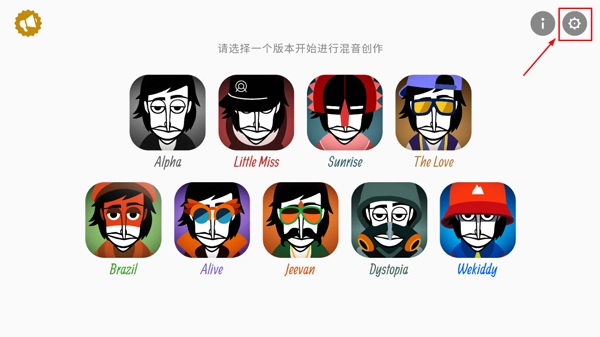 首先启动节奏盒子,进入游戏界面后,点击右上角的设置图标。