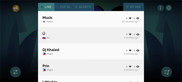 点击左上角的LIVE按钮,就能查看其他用户上传的歌曲,还能浏览全球排名前50的作品。