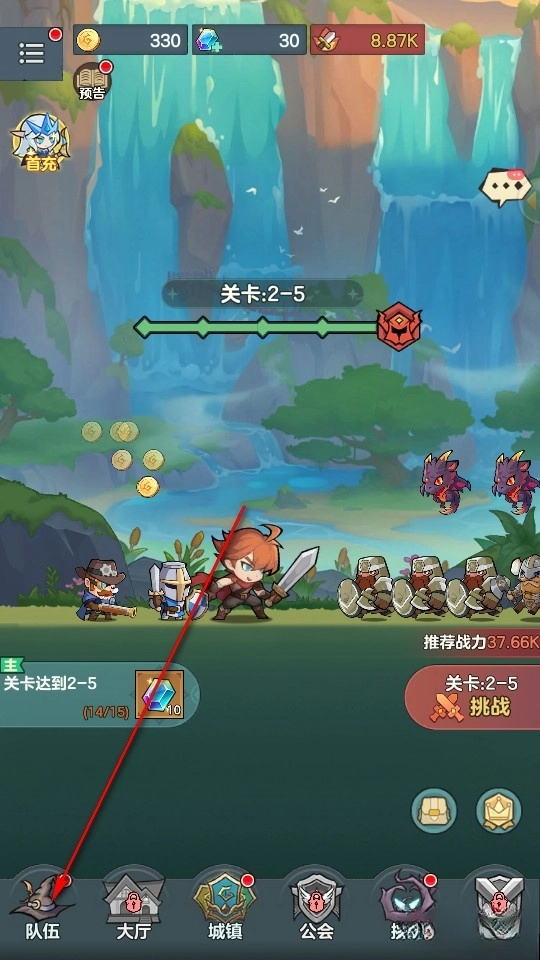 首先进入游戏,在游戏主界面的左下方点击队伍图标。