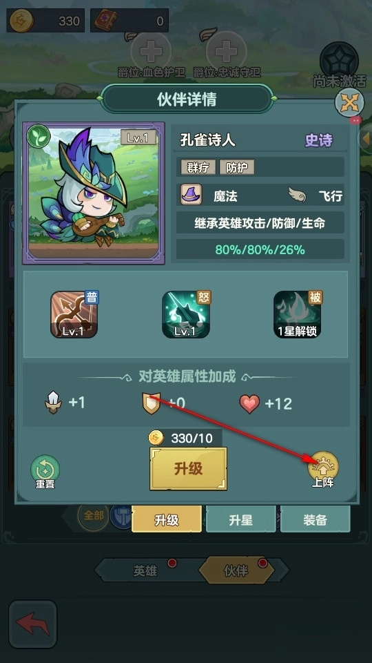 我们需要点击进入对应的伙伴,接着点击伙伴界面右下角的“上阵”按钮,这样就能完成对应的位置调换了。