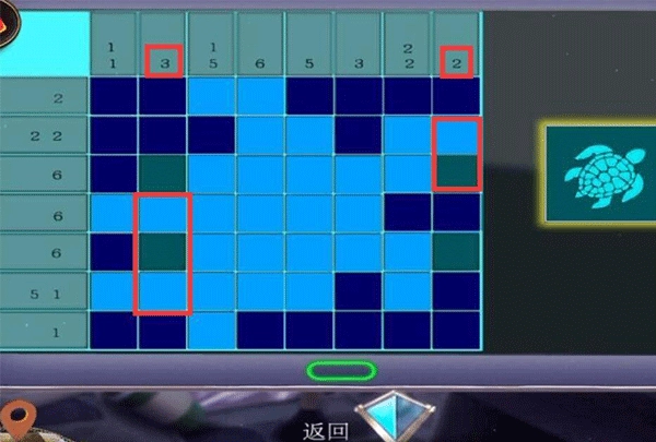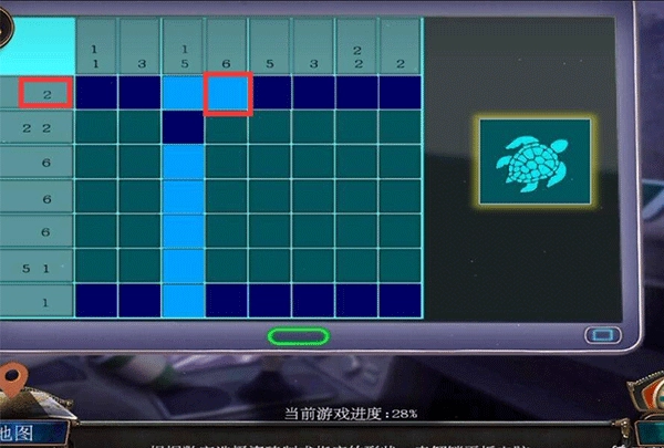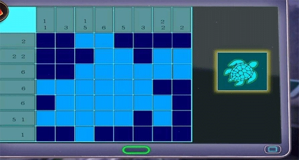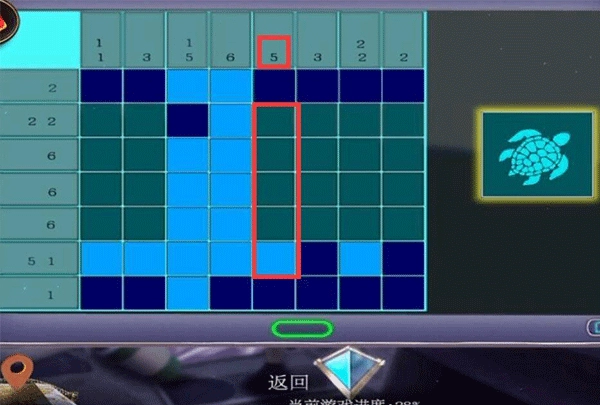 会进入乌龟平板上的小游戏,需要依据数字挑选瓷砖拼出指定形状,按照图中的要求完成解锁,下方的游戏进度条会实时显示游戏进程。