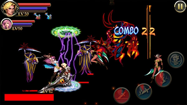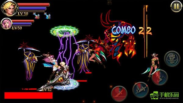 控制方式:用滑动触摸操作来操控角色,点击对应的按钮就能释放出华丽的技能。
