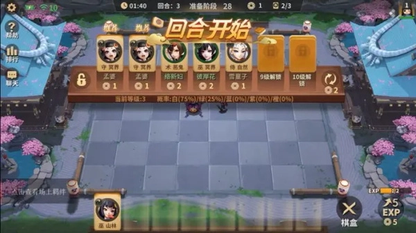 步骤1:每回合开始,棋盒会自动刷新棋子(也能消耗金币手动刷新),挑选并购买想要的麻将棋后,棋子会被放置到准备席中。