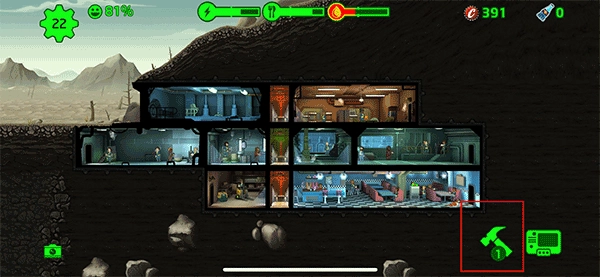 先点击屏幕右下角锤子图标。