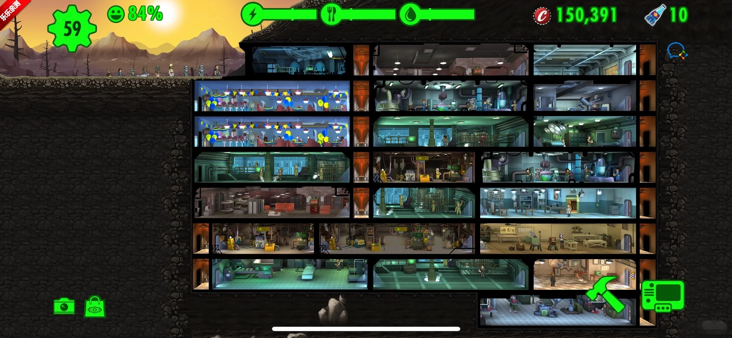 电力层:以发电室为核心设施,保障避难所整体的能源供给。该层可配置多个发电室,且各发电室能够通过合并操作来提高能源生产效率。