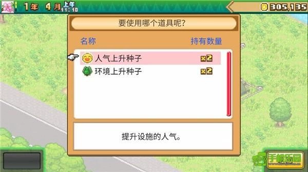 还可以使用不同道具提升设施的人气;