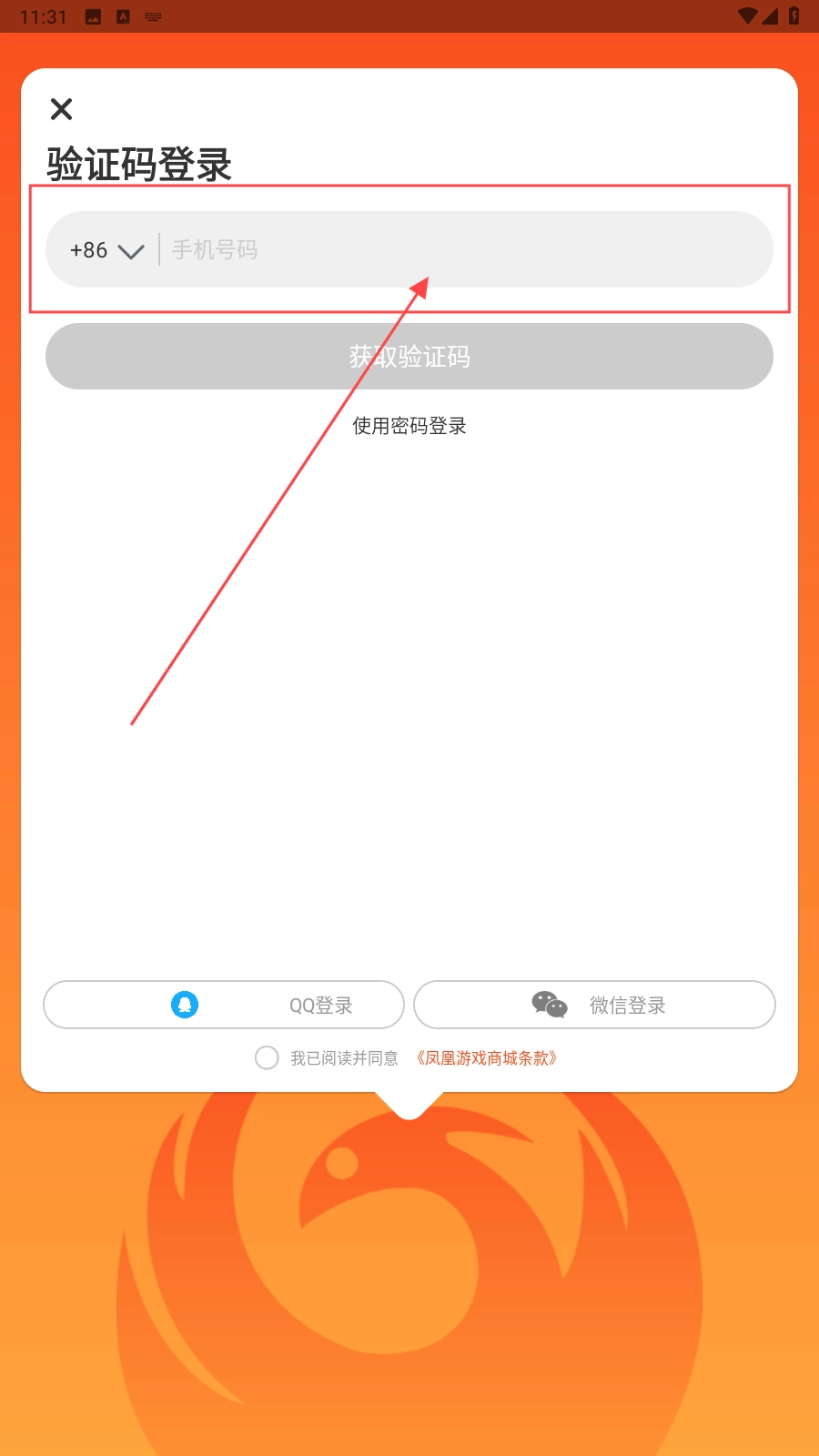 打开应用,填写手机号。