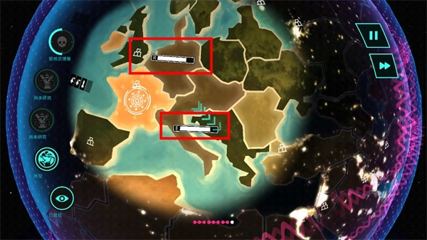 放大视图后,点击地球上其他势力时,玩家能够选择直接发起攻击、开展研究、进行扩张拆除,或是建造导弹等不同操作。
