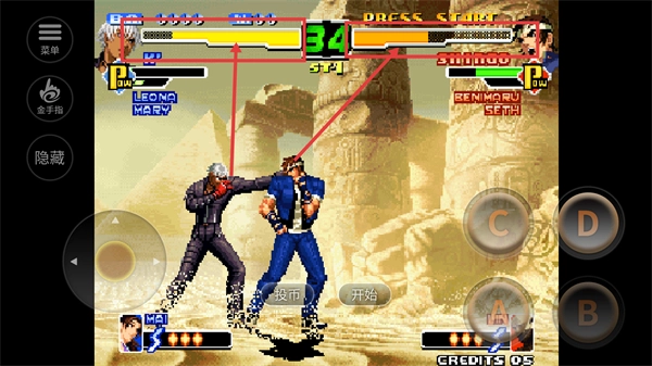 当血量数值显示为【34】时,即可按下【ABC】键激活反击模式,在此模式下能够无限制释放超必杀技,以此来扭转当前的战局。