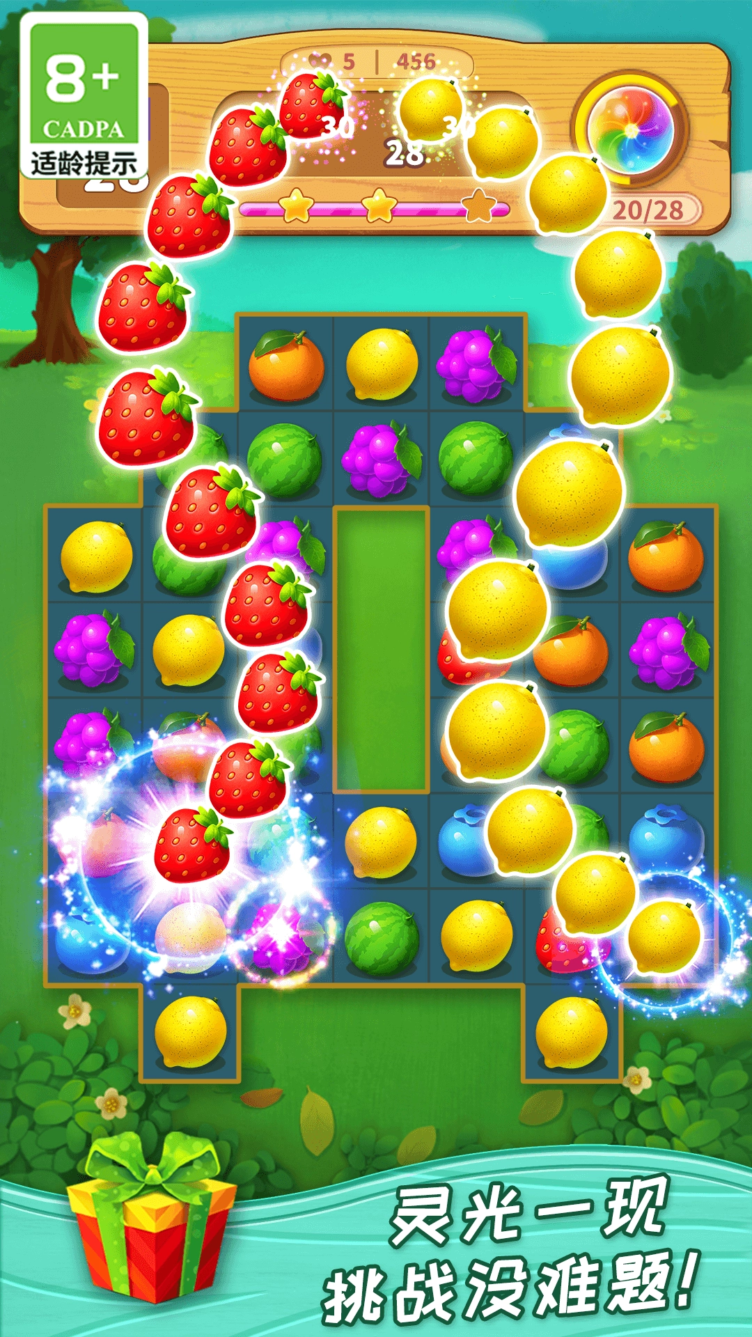 以水果连线消除为核心玩法,聚焦爆破带来的爽快体验与富有创意的关卡挑战,玩家通过连接相同水果来触发消除机制,在轻松惬意的氛围里感受即时反馈带来的乐趣。