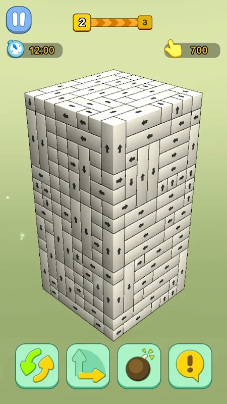 箭头消消乐是一款趣味十足的休闲消除游戏,能有效锻炼你的逻辑空间思维。游戏内设有大量带箭头的方块,玩家需按合理顺序点击以完成消除,玩法类似立体华容道,难度循序渐进。这里有不少实用技巧:首先要留意方块会沿箭头方向移动,因此需提前规划点击顺序;带有菱形方向箭头的方块,需要其他靠近箭头的方块配合才能消除,这就需要更复杂的思考;随着关卡深入,方块会组成更大且形状多变的立方体,难度随之增加,玩家需跳出常规思维来规划路线。游戏还贴心配备了炸弹等多种道具,关键时刻使用可助你快速消除方块、突破瓶颈。此外,游戏画面精致、音效优质,关卡丰富且可自由选择,能让你充分享受游戏乐趣,提升逻辑能力,挑战自我极限,快来体验吧!